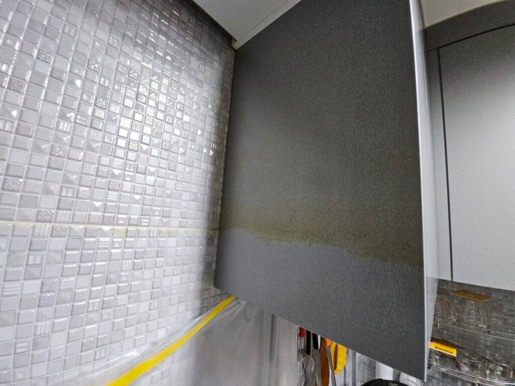 고객님이 후드를 깨끗하게 사용하셨지만 후드에 가려진 부분은 청소를 할 수 없기 때문에 후드를 철거하면 이렇게 기름때가 있습니다. 이런 찌든 기름때는 기름때 전용 약품으로 청소해야 잘 지워집니다.