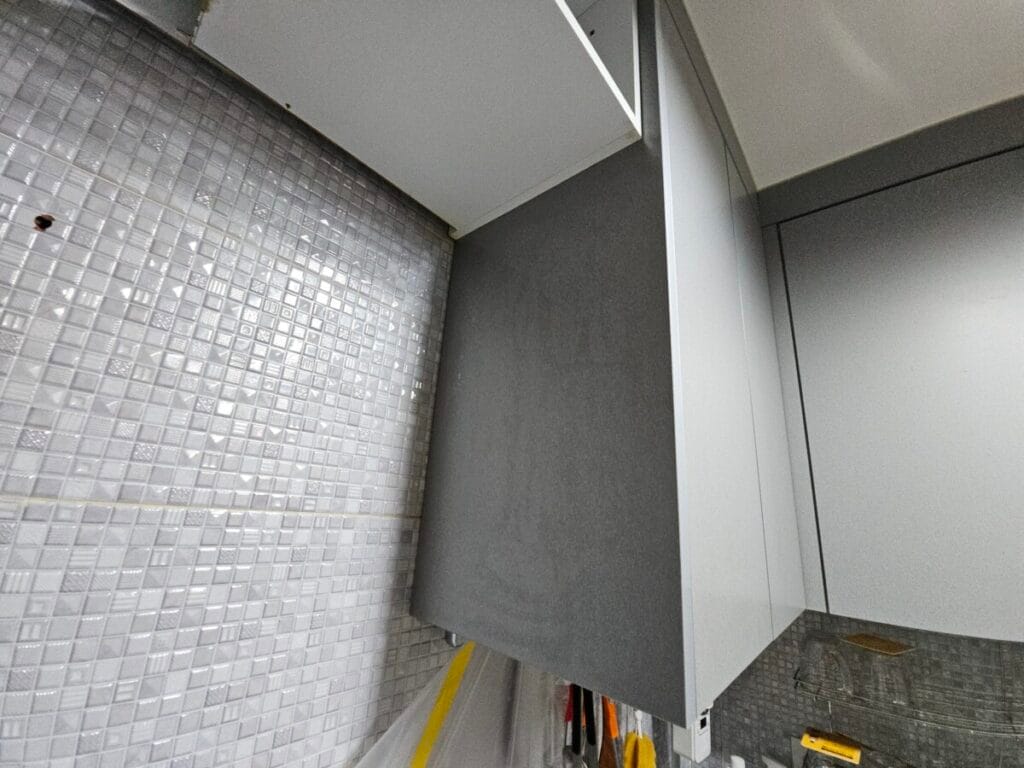 고객님이 깔끔해진 벽타일과 상부장을 보시고 정말 좋아하셨네요.