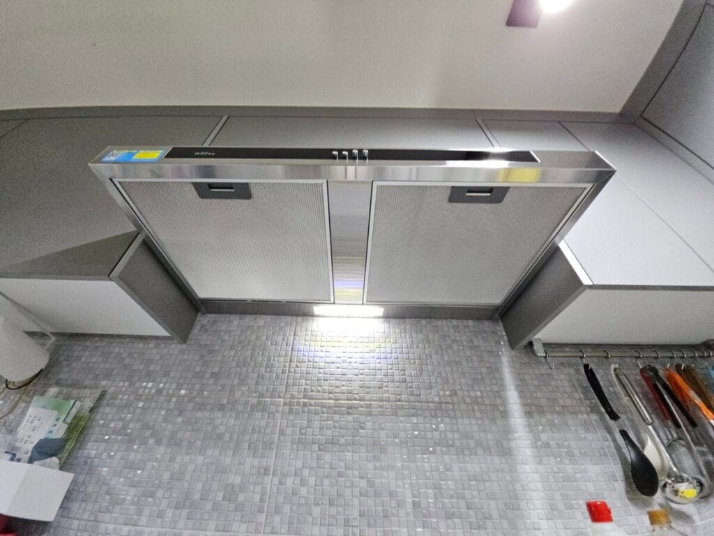 오늘은 주방에 설치된 침니 후드 교체 작업을 소개해드리겠습니다.
