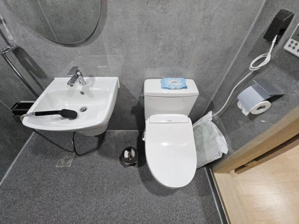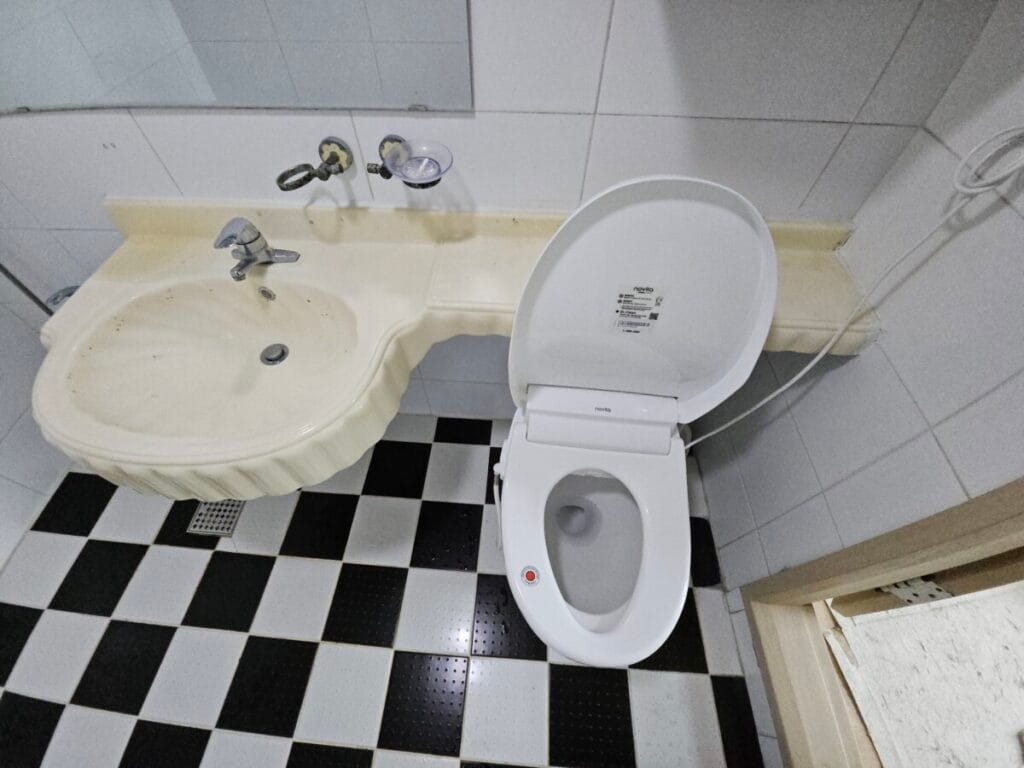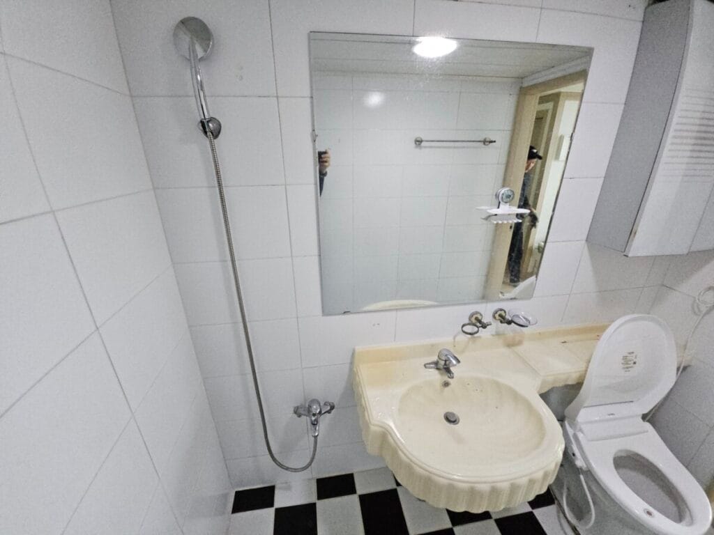 세면대와 변기 등의 도기류와 컵홀더 등의 악세서리 등도 상당히 오래되어 보입니다.