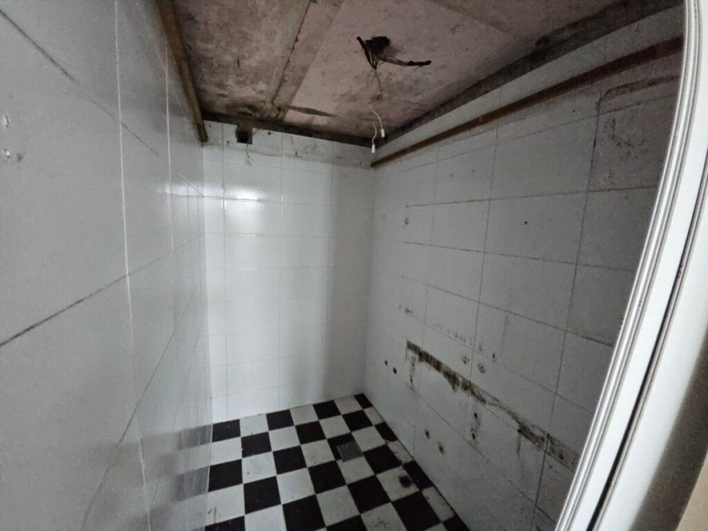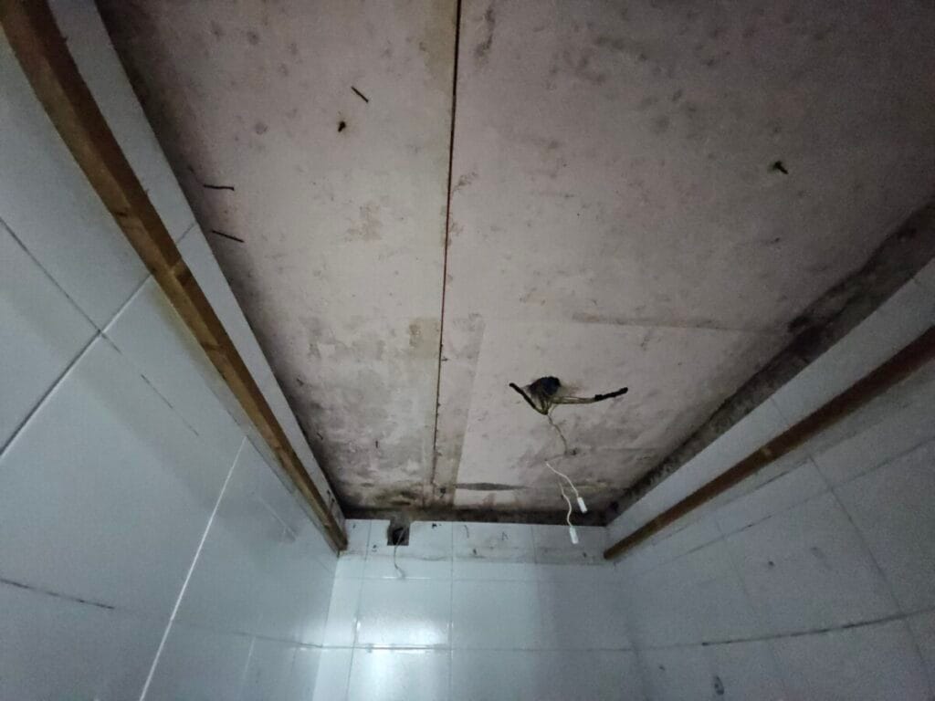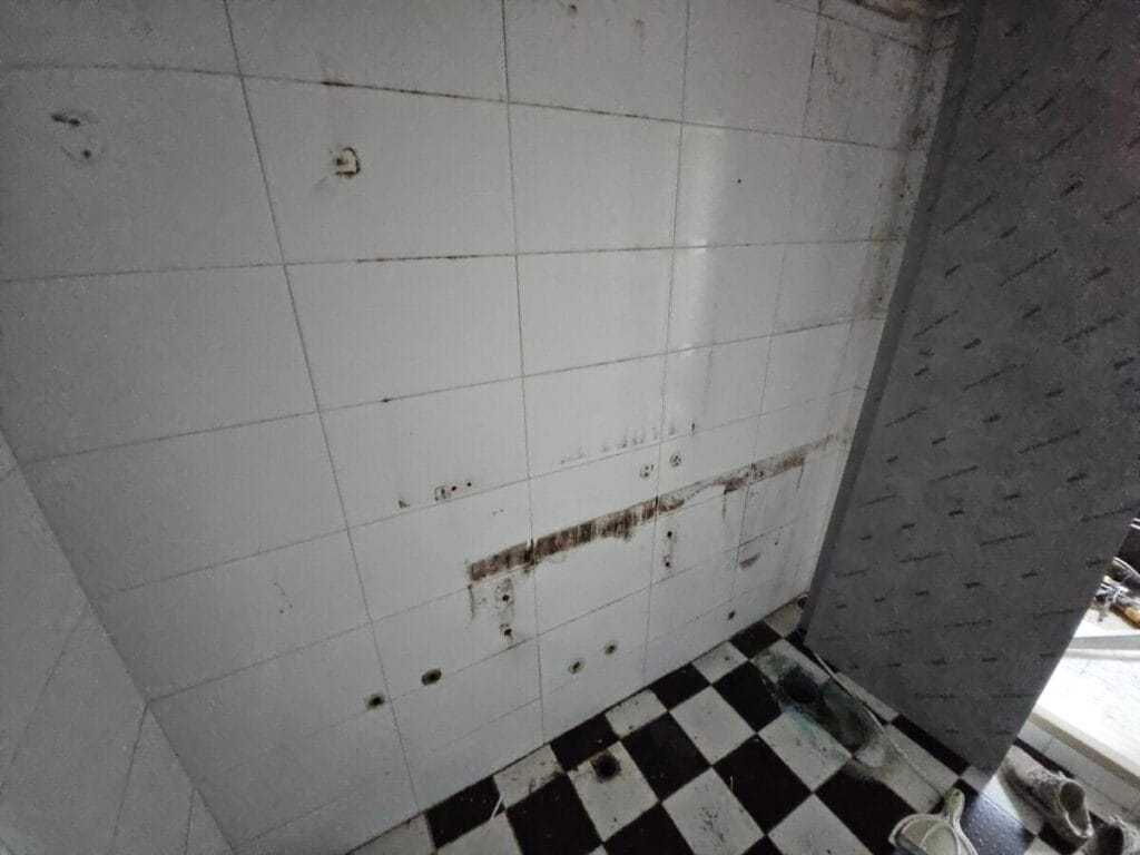 기존 화장실을 철거한 모습입니다. 천장재, 도기류, 악세서리 등 전부 철거하였습니다. 일부 곰팡이가 있는 부분들은 청소를 하고 설치 작업을 시작하였습니다.